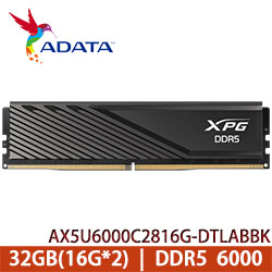 ADATA威剛 XPG Lancer Blade 32GB(16G*2) DDR5 6000 雙通道 AX5U6000C2816G-DTLABBK 黑色散熱片