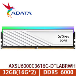 ADATA威剛 XPG Lancer Blade RGB 32GB(16G*2) DDR5 6000 雙通道 AX5U6000C3616G-DTLABRWH 白色散熱片