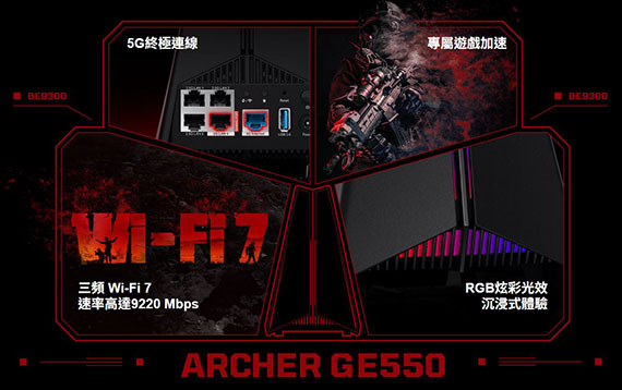 TP-Link Archer GE550 BE9300 三頻 Wi-Fi 7 電競路由器