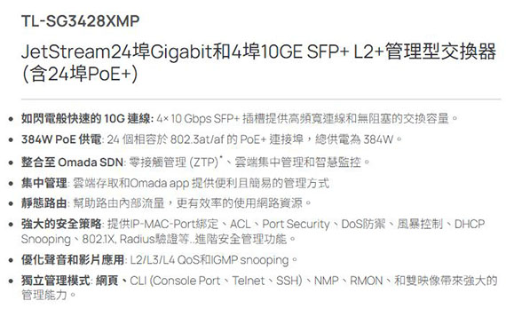 【上一個】【下一個】 | TP-Link TL-SG3428XMP JetStream 24埠 + 4埠SPF+ Gigabit L2+ 管理型交換器
