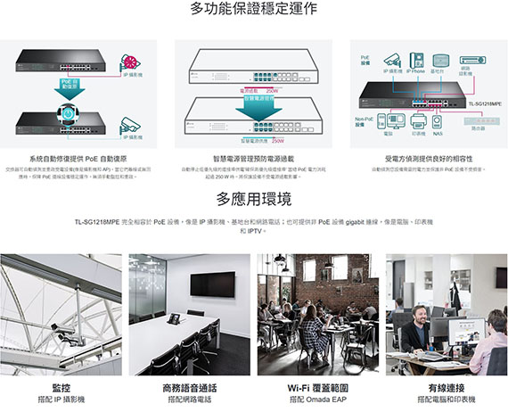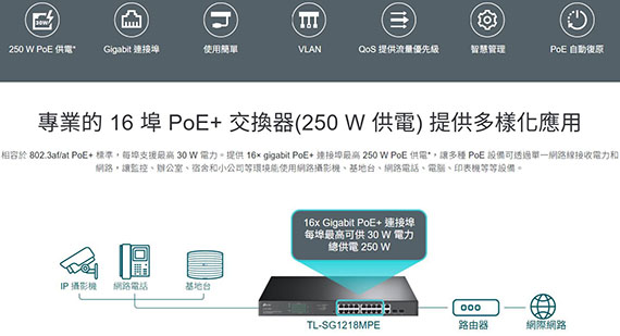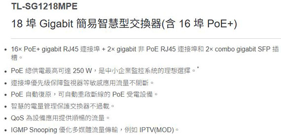 【上一個】【下一個】 | TP-Link TL-SG1218MPE 16埠 PoE+ + 2埠  Gigabit 簡易智慧型交換器