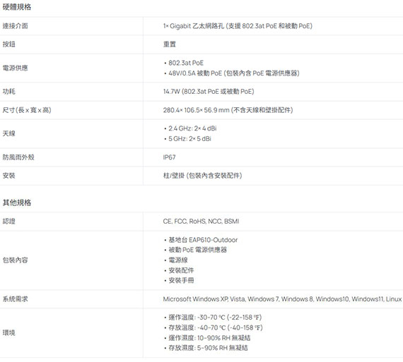 TP-Link EAP610-outdoor AX1800 室內/室外 WiFi 6 基地台