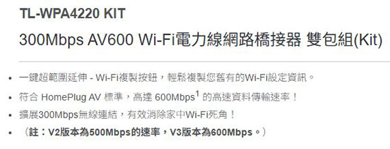 TP-Link TL-WPA4220 KIT Wi-Fi電力線網路橋接器 雙包組(Kit)