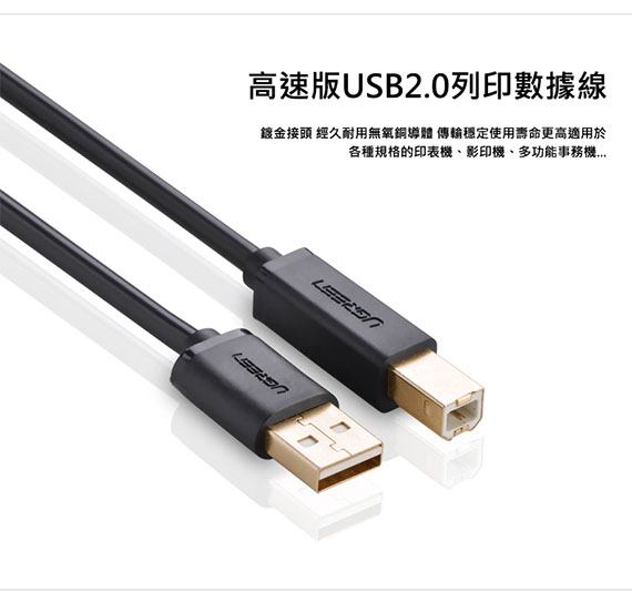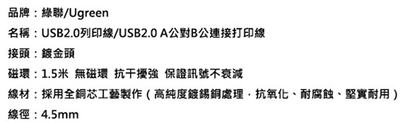【上一個】【下一個】 | UGREEN綠聯 10350 USB傳輸線 2.0 A公-B公 1.5M