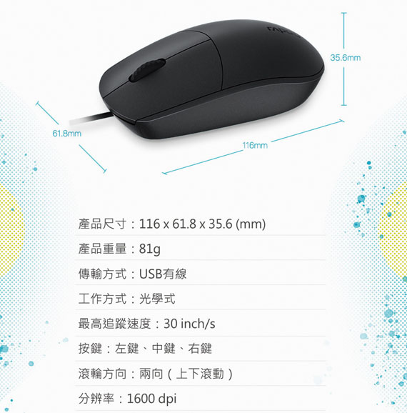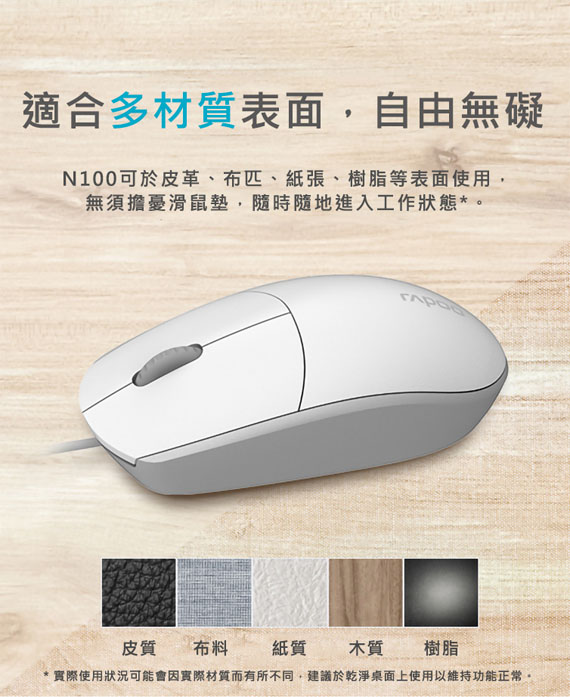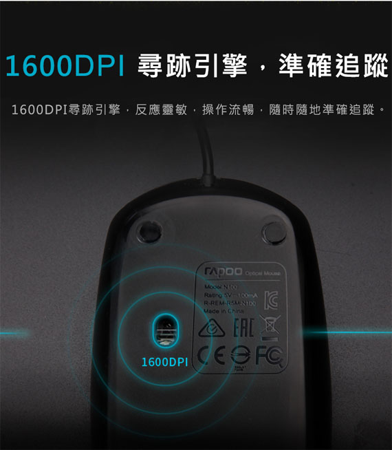 Rapoo雷柏 N100 黑色 有線光學滑鼠