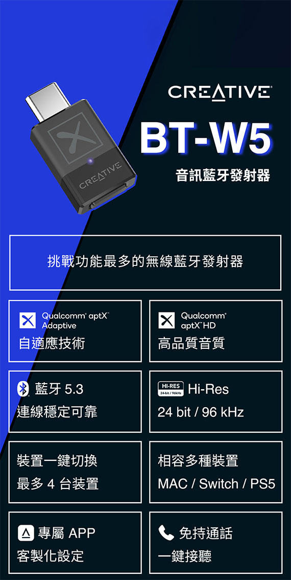 【上一個】【下一個】 | CREATIVE創新未來 BT-W5 藍牙音訊發射器(限量售完為止)
