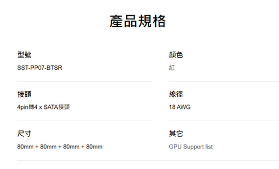 【上一個】【下一個】 | SilverStone銀欣 SST-PP07-BTSR 紅色 SATA電源轉接線 1轉4 4pin母-15pin公 8+8+8+8cm