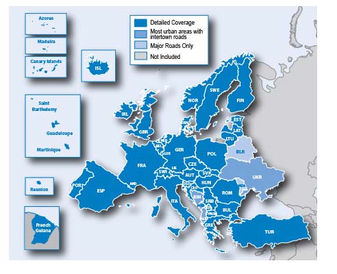 如何在不熟悉的歐洲街道,還能對自己的方向充滿了信心?City NavigatorR Europe NT為您的Garmin機台提供詳細的歐洲地圖,涵蓋西歐全區及東歐部分國家。