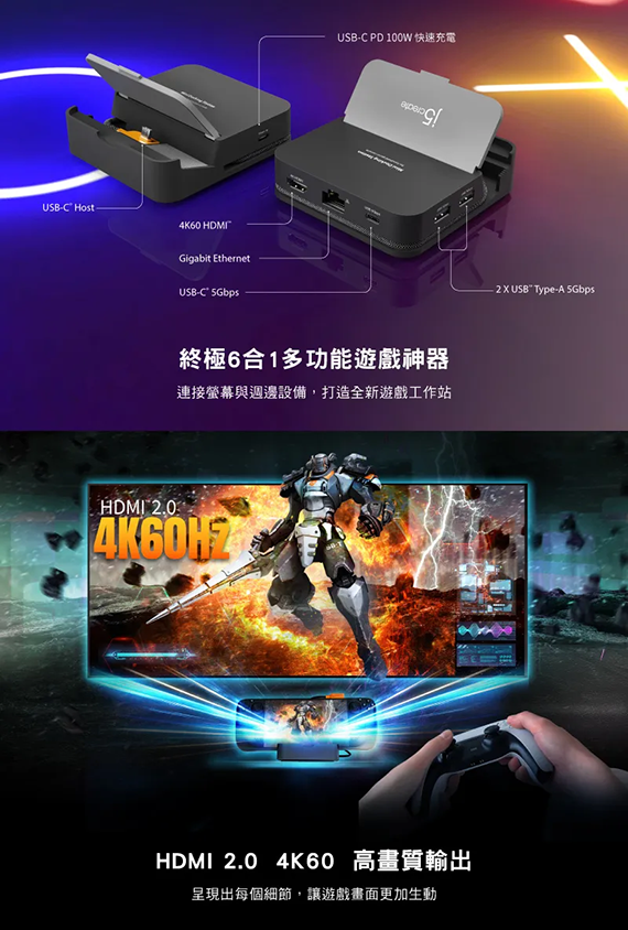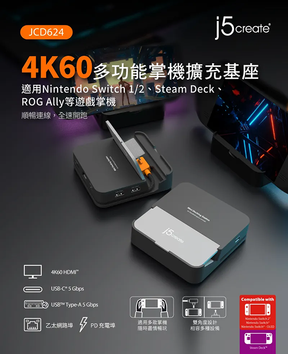j5 create JCD624 4K60多功能掌機擴充基座