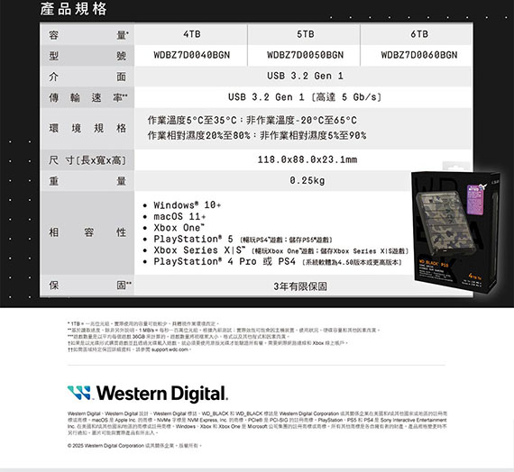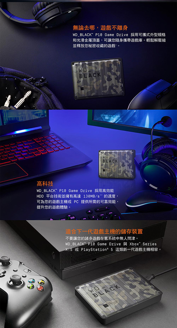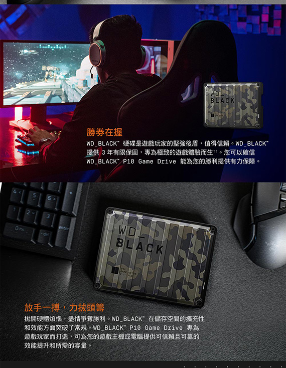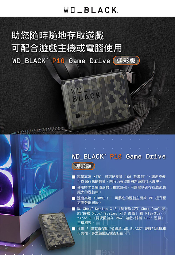 【上一個】【下一個】 | Western Digital威騰 5TB WDBZ7D0050BGN 迷彩版 黑標 P10 Game Drive 2.5吋電競外接式硬碟(三年保固)