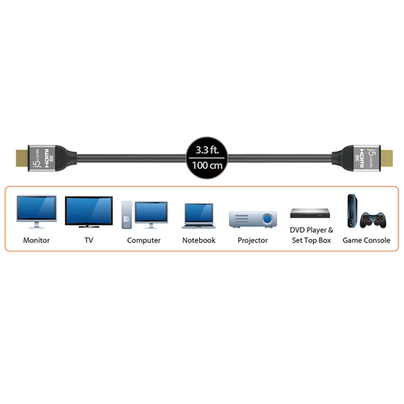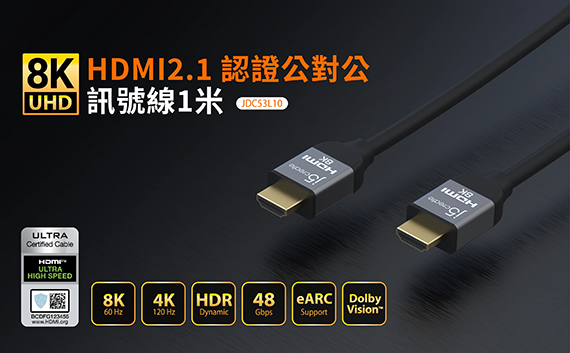 【上一個】【下一個】 | j5 create JDC53L10 8K HDMI傳輸線 2.1版 A公-A公 1M