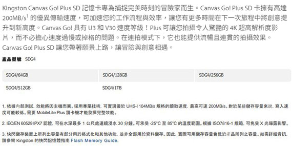 KINGSTON金士頓 Canvas Go! Plus SD 記憶卡 512GB SDXC 200MB/s SDG4/512GB