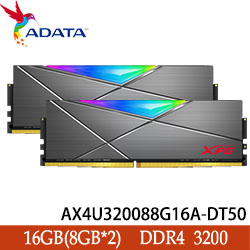 ADATA威剛 XPG SPECTRIX D50 RGB 16GB(8G*2) DDR4 3200 雙通道 AX4U320088G16A-DT50 銀河灰散熱片