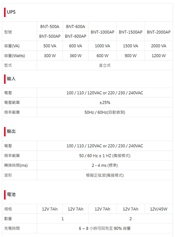| 型號 | BNT-1000AP-230USB 1000VA 220V |