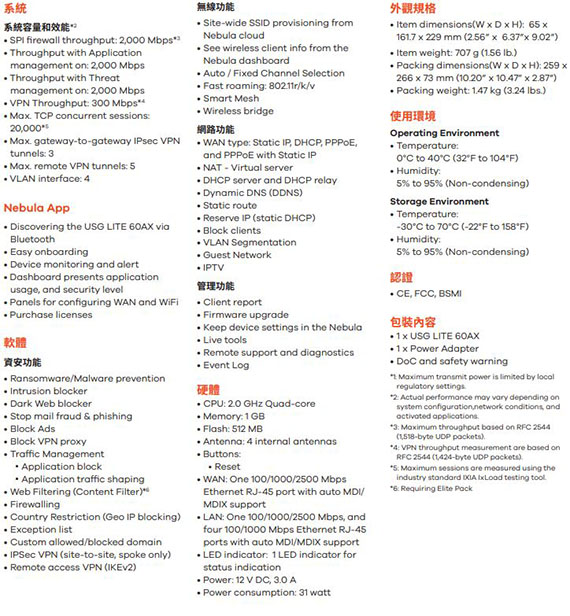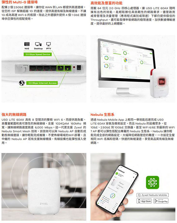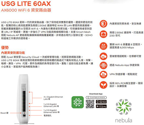 【上一個】【下一個】 | ZYXEL兆勤合勤 USG LITE 60AX AX6000 WiFi 6 資安路由器(促銷價至11/30 止)