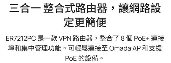【上一個】【下一個】 | TP-Link ER7212PC Omada 三合一 Gigabit VPN 路由器
