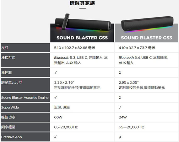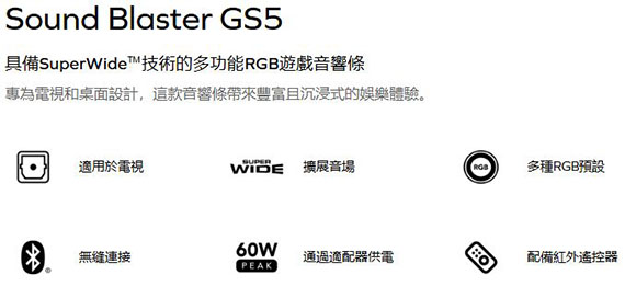 【上一個】【下一個】 | CREATIVE創新未來 Sound Blaster GS5 RGB 條形喇叭(促銷價至 10/31 止)