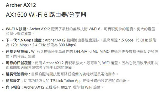 TP-Link Archer AX12 AX1500 雙頻 Wi-Fi 6 路由器/分享器