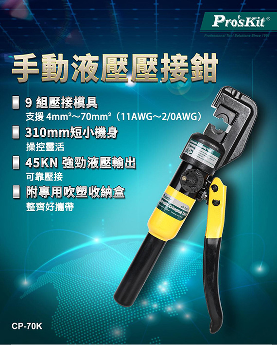【上一個】【下一個】 | ProsKit寶工 CP-70K 手動液壓壓接鉗