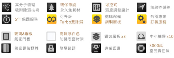 - 創新Turbo升級技術,使『耐久財』的收藏家電子防潮箱可以升級成快速、超低濕、常溫常壓脫濕的『設備財』。