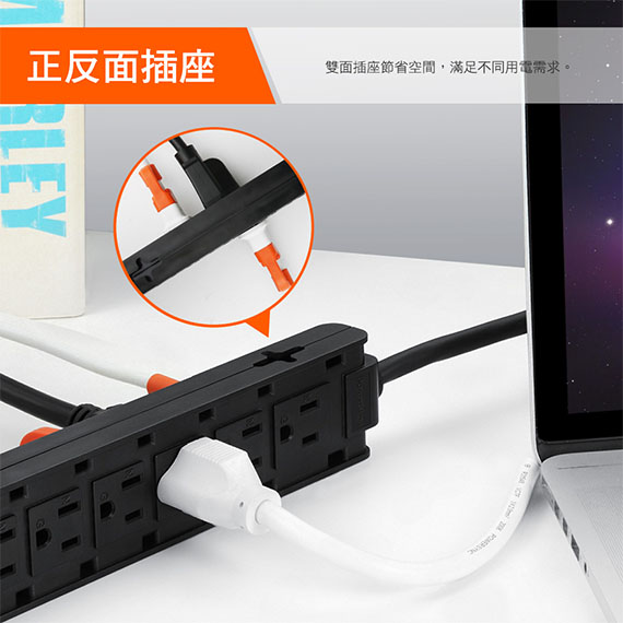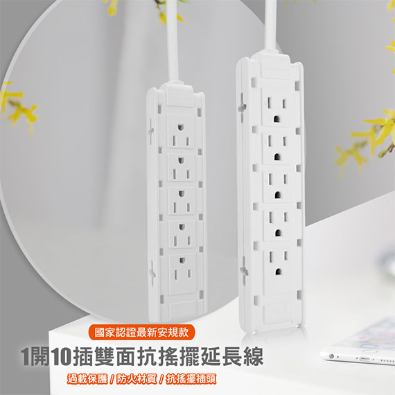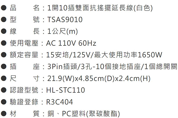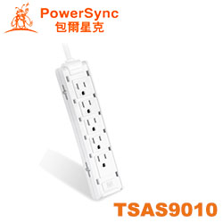 PowerSync 群加 TSAS9010 1開10插 3孔 1M 白色 雙面抗搖擺 電源延長線