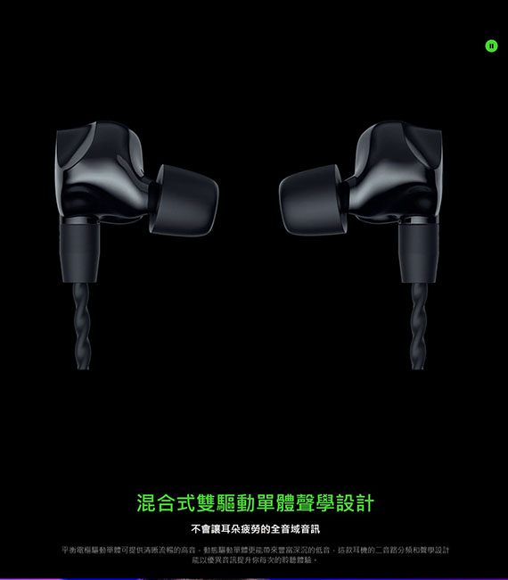 入耳式(耳道)、混合式(動態+平衡電樞)驅動單體、3.5mm、線長1.6m、符合人體工學的低調形狀、卓越的被動噪音隔離、2年保固