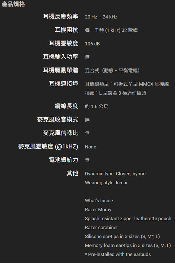 【上一個】【下一個】 | RAZER Moray 海鰻 有線 監聽 入耳/耳道式耳機麥克風 (RZ12-04450100-R3M1)