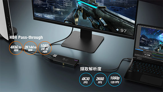 支援4K實況擷取與4K60Hz HDR Passthrough提供精緻的4K影像畫質,讓你精彩的遊戲實況能夠吸引更多關注與支持