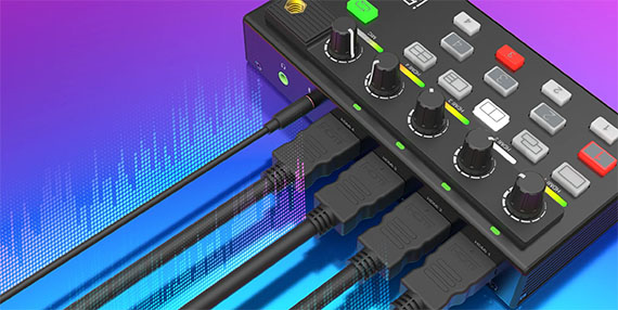 多聲道混音控制獨立的5個音源控制鈕,分別對應4台HDMI™設備和3.5mm音源輸入,聲音表現更精彩