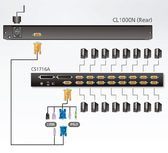 CL1000N為可安裝於機架的LCD控制端模組,整合19"LCD液晶螢幕、鍵盤及觸控板於1U高度,為使用者節省空間及預算,不須額外購買KVM多電腦切換器模組,以節省機房使用空間並提升工作效率。