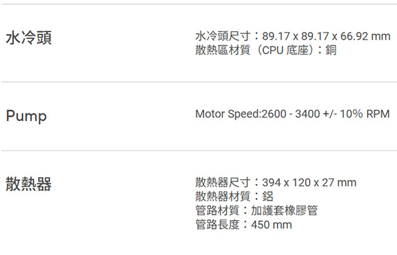 1 x 水冷散熱器(預塗散熱膏)