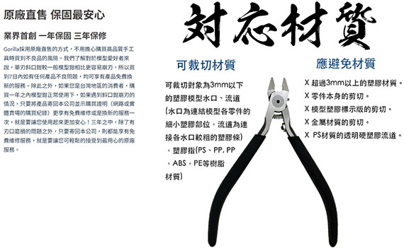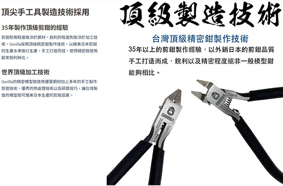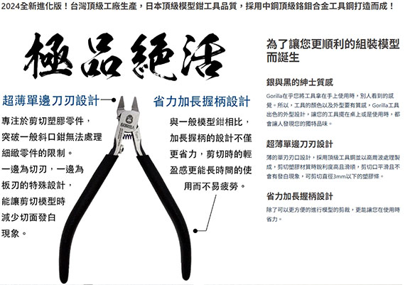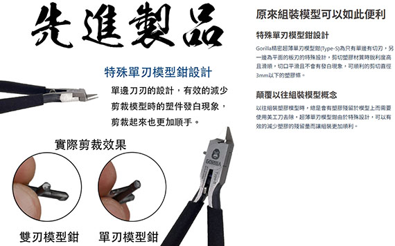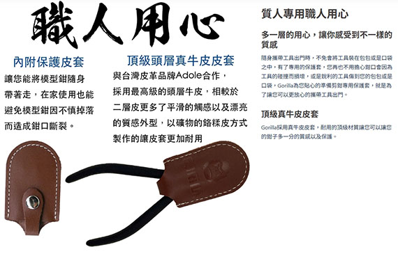 【上一個】【下一個】 | GORILLA 精密超薄單刃模型鉗-Type-S-內附真牛皮鉗套 009-G033
