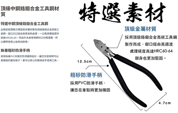 超薄單邊刀刃設計,省力加長握柄設計,特選中鋼公司頂級鉻鉬合金工具鋼,極限0.8mm-2mm的切面設計,頸部的螺絲阻擋設計,一年保固 三年保修