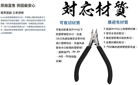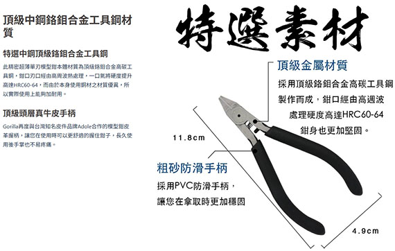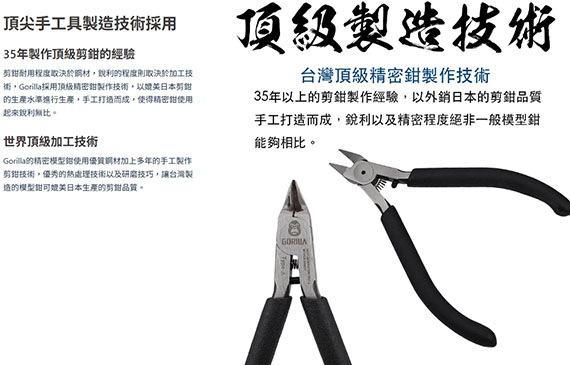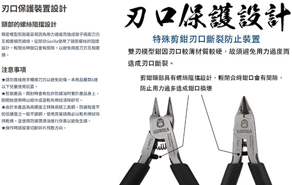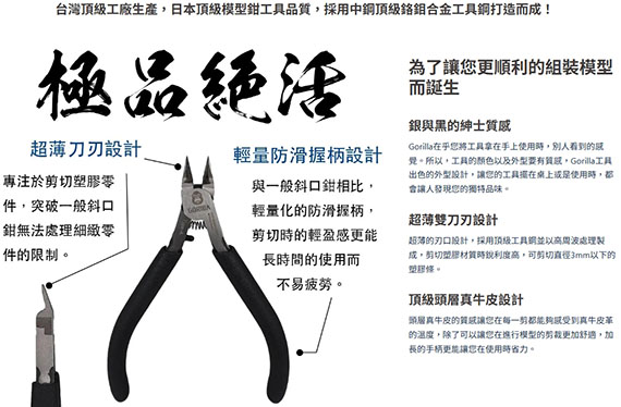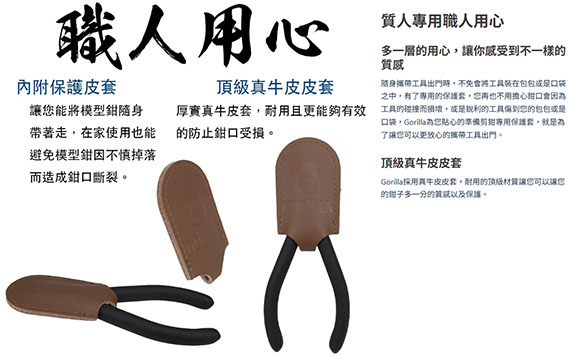【上一個】【下一個】 | GORILLA 精密超薄雙刃模型鉗-Type-A-內附真牛皮鉗套 010-G034