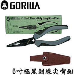 【上一個】【下一個】 | GORILLA 6吋極黑剝線尖嘴鉗-內附真牛皮鉗套 022-G037