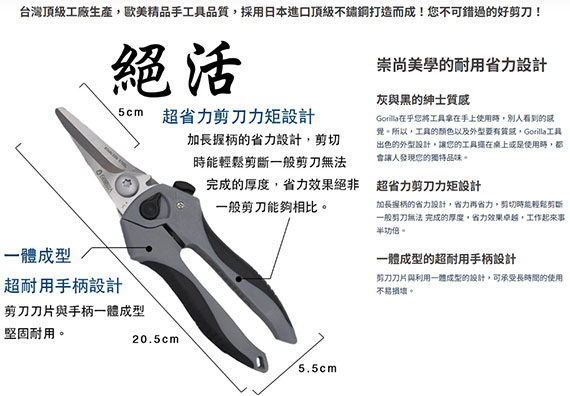 GORILLA 超省力耐用多功能剪刀 8吋 008-G022