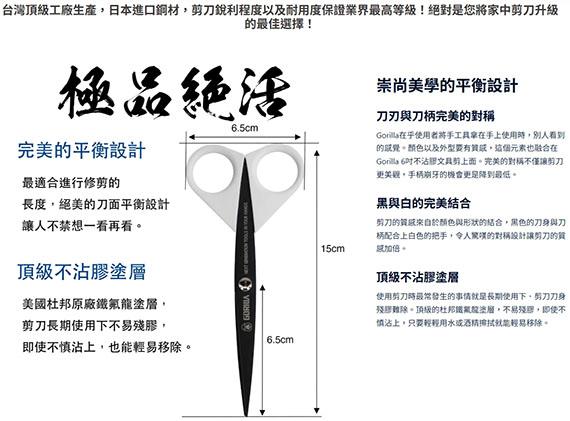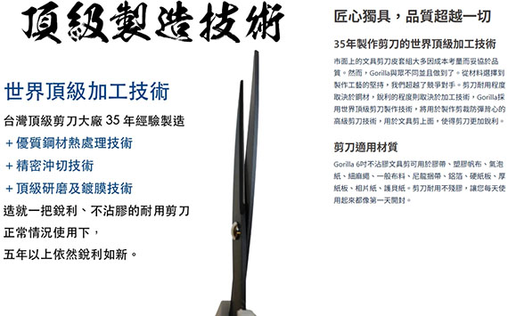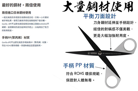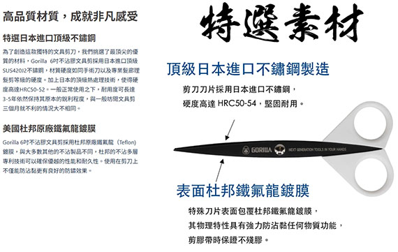 GORILLA 超耐用不沾膠文具剪刀 6吋 007-G021