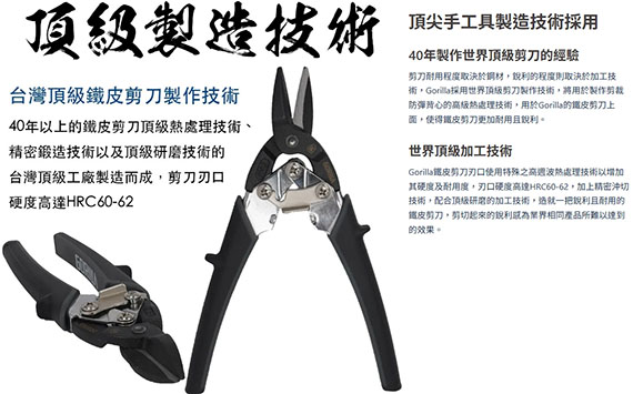 GORILLA 超省力小型鐵皮剪刀-直剪 019-G024