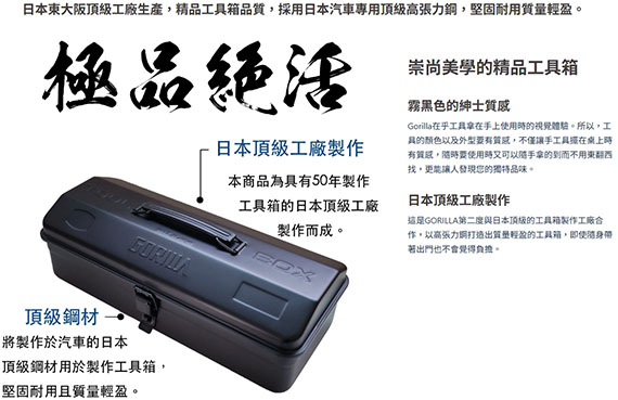 【上一個】【下一個】 | GORILLA 霧黑色高張力鋼大工具箱-附贈專用EVA泡綿 033-G064