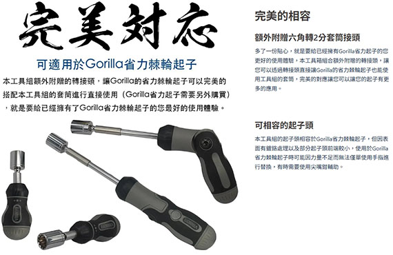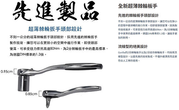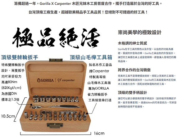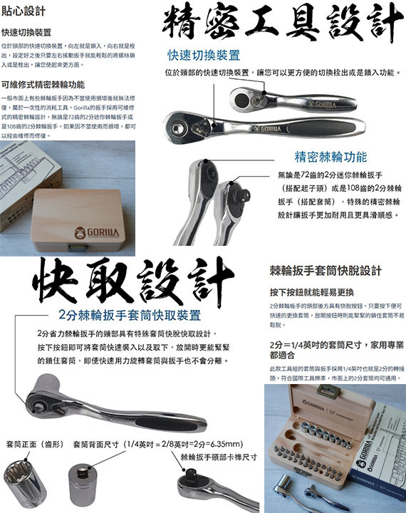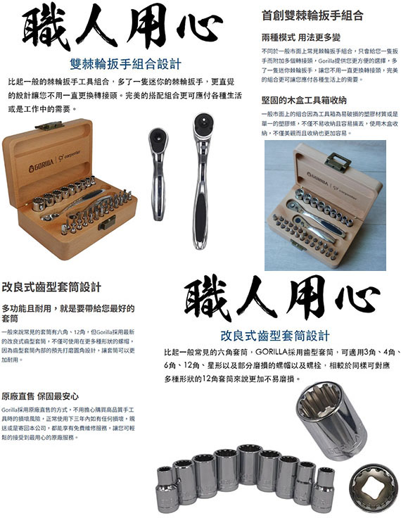 【上一個】【下一個】 | GORILLA 2分超省力雙棘輪扳手36in1套筒起子木盒組 013-G041