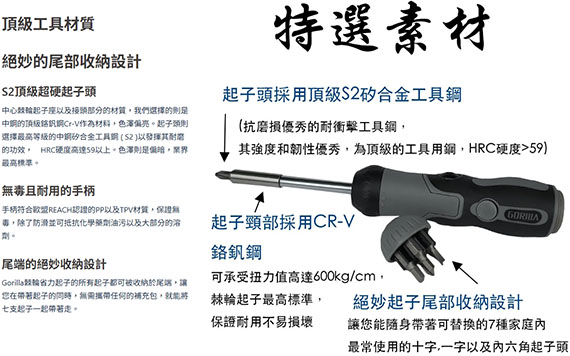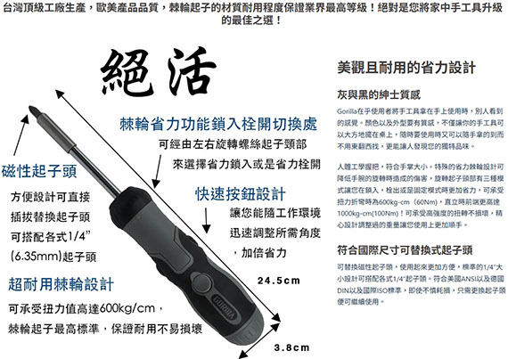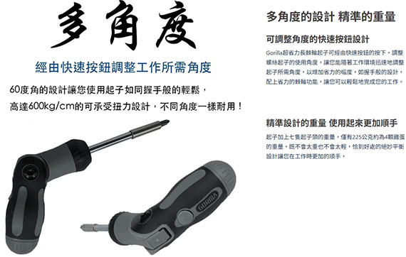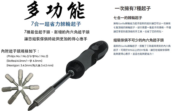 【上一個】【下一個】 | GORILLA 7合1專業省力 長棘輪螺絲起子 006-G002 (購買前請先詢問庫存)