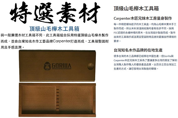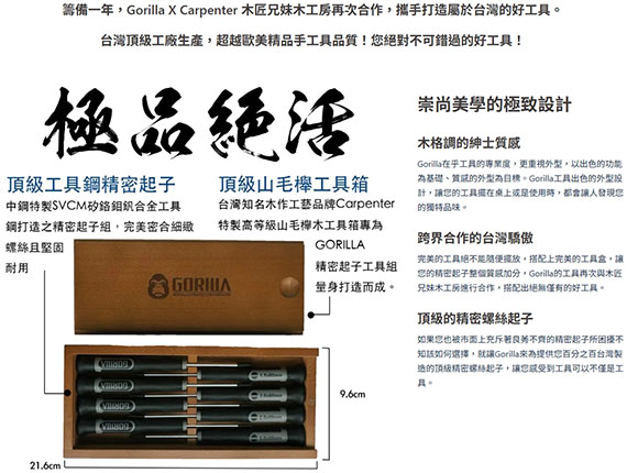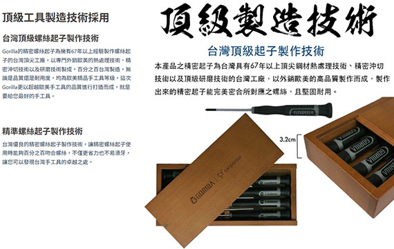 木格調的紳士質感,頂級的精密螺絲起子,特選台灣中鋼頂級SVCM工具鋼,表面防鏽鍍鉻處理,頂級山毛櫸木工具箱,頂級工具製造技術,加大彈性螺旋帽,台灣製造