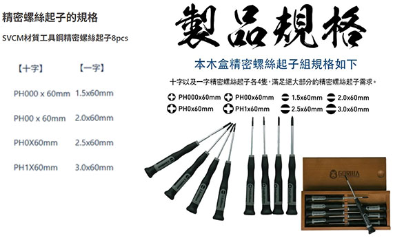 【上一個】【下一個】 | GORILLA 8合1標準精密螺絲起子組 023-G003