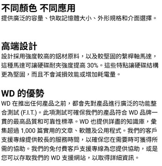 |  滿足外出時的日常運算需求 WD Blue 行動硬碟符合 WD 的最高品質和可靠性標準,提供多種適合您日常行動運算需求的功能。