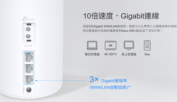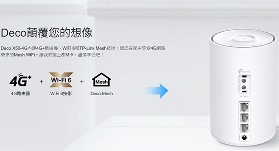 TP-Link Deco X50-4G(1-pack) AX3000 WiFi 6(802.11ax) 4G+ 網狀Mesh 路由器