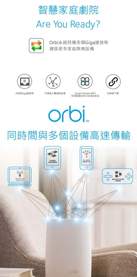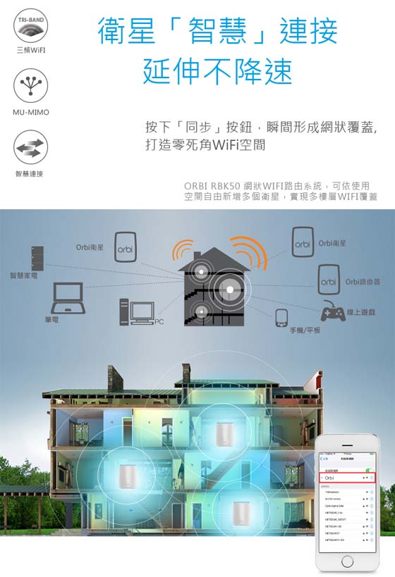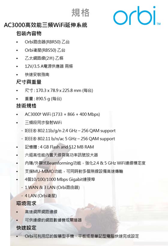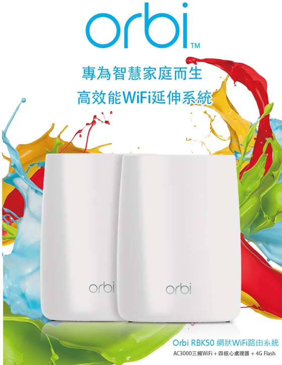 NETGEAR RBK50 Orbi 高效能AC3000三頻WiFi延伸系統組合