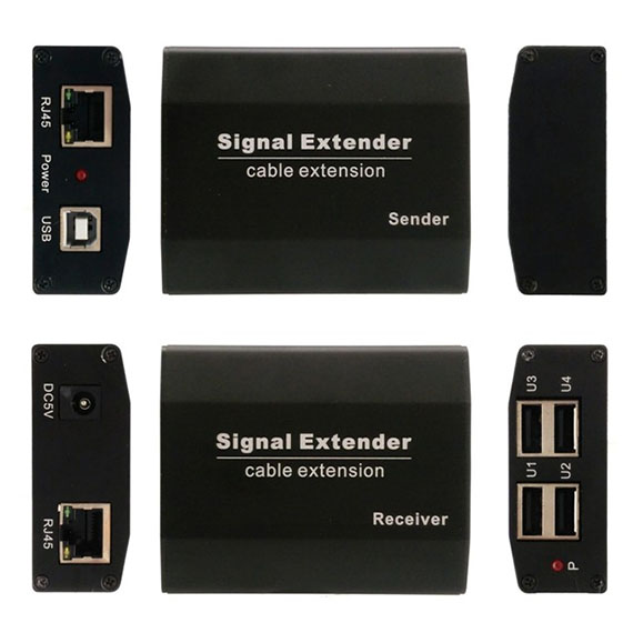 由一組傳送器及接收器組成,兩端之間以一條 CAT6纜線連接,可將標準的 USB2.0訊號延長,最遠可達100公尺、支援USB介面之網路視訊攝影機的解析度可達1080p、支援單邊電源供應 (接收端)、純外接式硬體設計