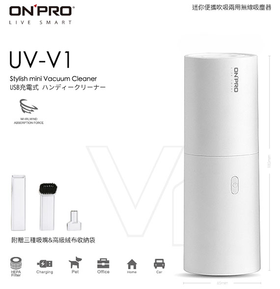 【上一個】【下一個】 | ONPRO UV-V1 無印白 USB充電式 無線吸塵器