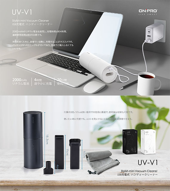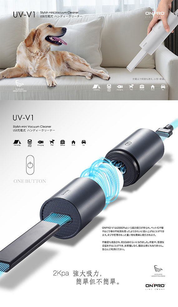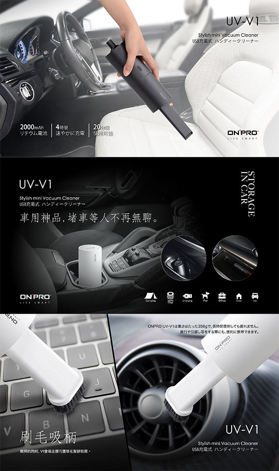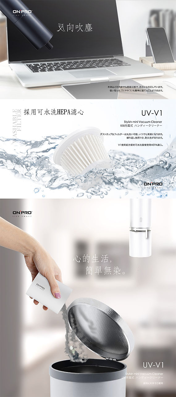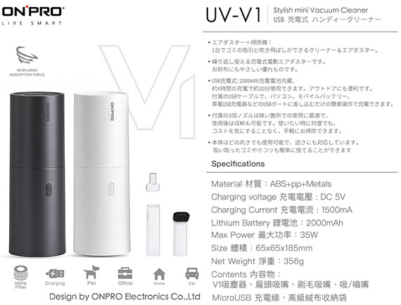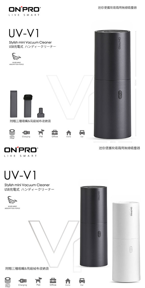 【上一個】【下一個】 | ONPRO UV-V1 隕石黑 USB充電式 無線吸塵器