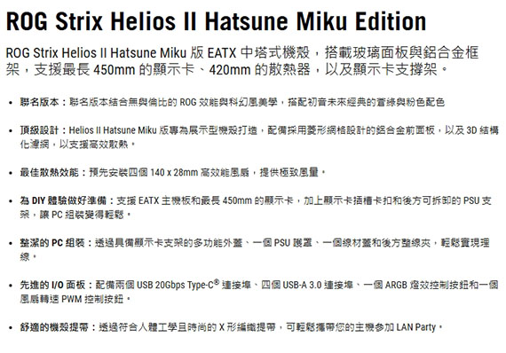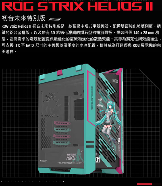 ASUS華碩 ROG Strix Helios II GX601S Hatsune Miku Edition太陽神 初音未來特別版 玻璃透側 中塔式電競 E-ATX 機殼